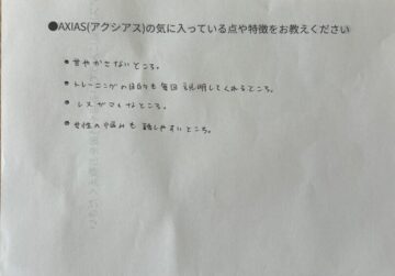 Personal Training Gym AXIAS(アクシアス)への口コミ「レスがマメで、女性の悩みも話しやすい」