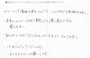 Personal Training Gym AXIAS(アクシアス)への口コミ「LINEで質問したら丁寧に教えてくれる」